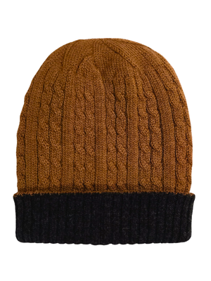 Reversible Baby Alpaca Beanie Hat - Camel/Charcoal