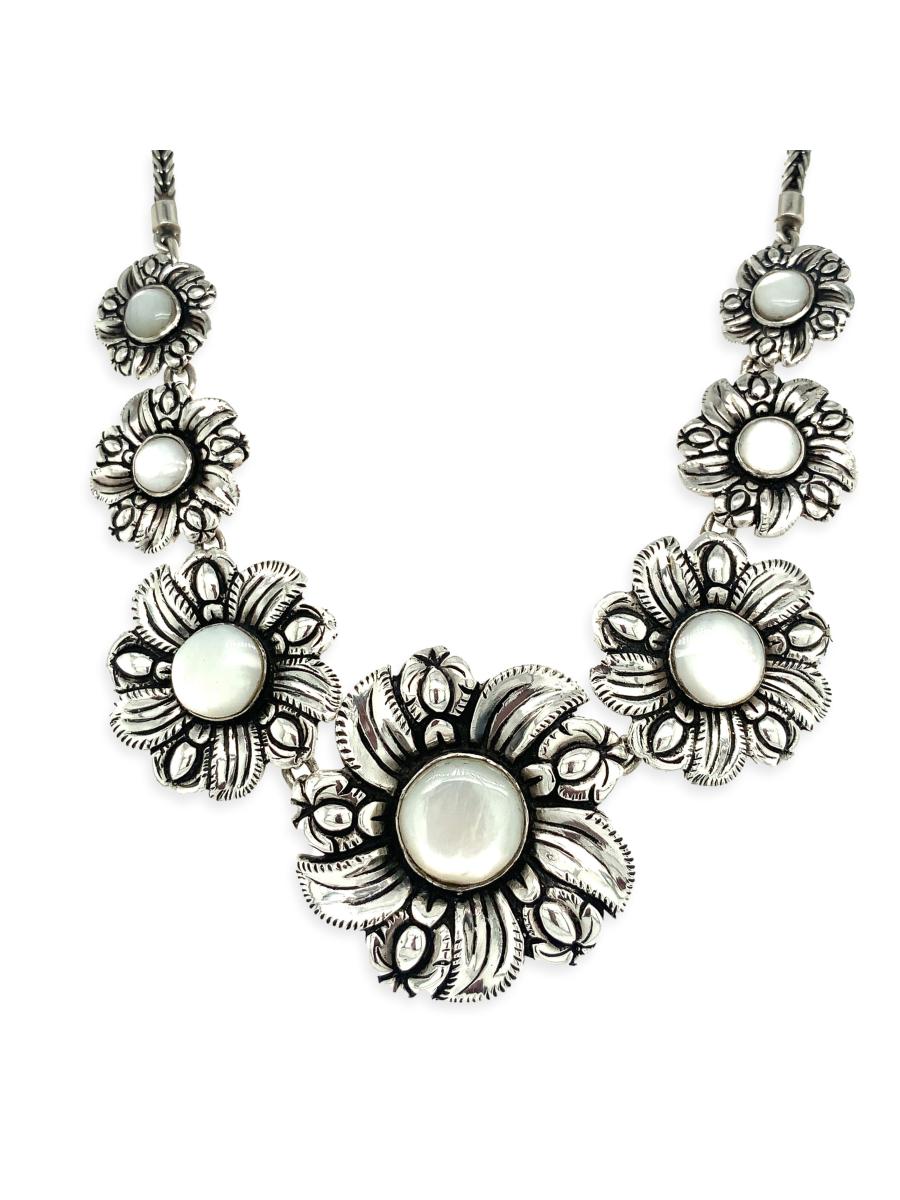 $560.00Sterling Silver & Carved Mother-of-Pearl Flower Necklace